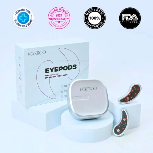 Aczeroo is the first all-in-one under-eye device specifically engineered with clinical-grade red light therapy + microcurrent technology to help drain trapped lymphatic fluid while also firming, hydrating, and strengthening delicate under-eye skin.