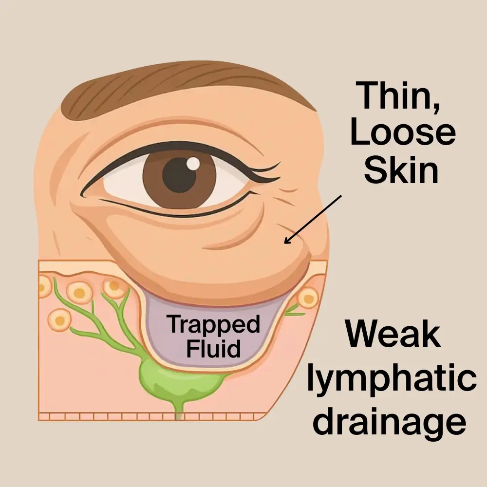 They treat the surface. But they don't target what's happening underneath, where the puffiness is actually coming from.